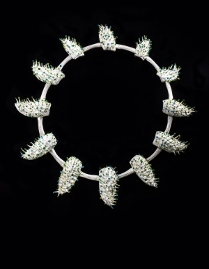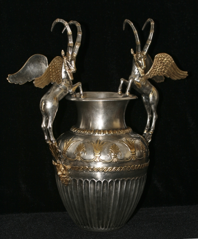 Angelo Krassini was awarded the second prize in 1986 at the Erfurt Quadrienalle and prized by the Bulgarian Union of Artists in 1987 and 2007. His works can be seen in the National Museum of Bulgarian Art in Sofia and in the Museum of town Yambol (Bulgaria), Lalaonis Jawelry Museum in Athens, as well as in private collections. Now the aim of Krassinis work is to restore the traditional technologies and elements of the antique jawellery art.